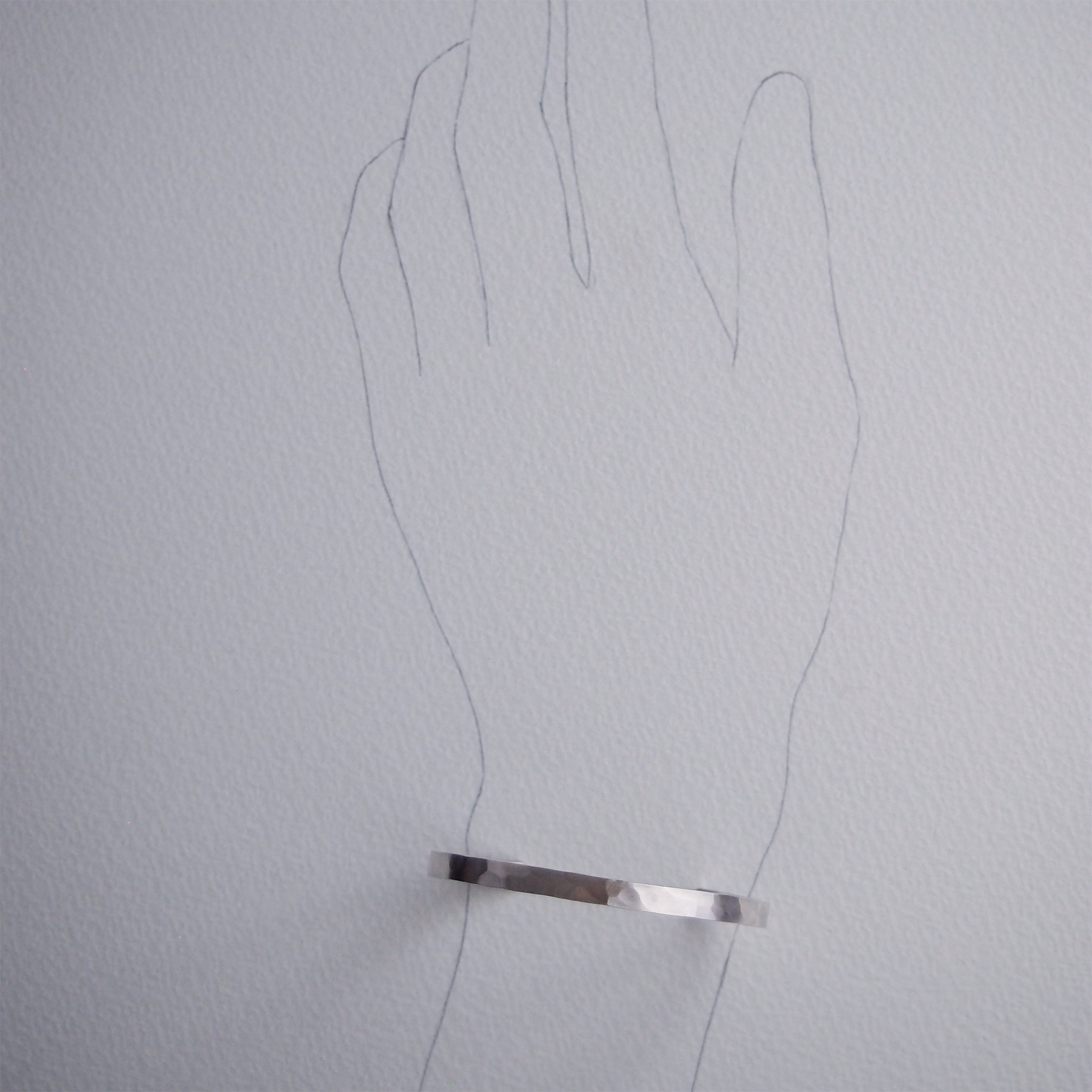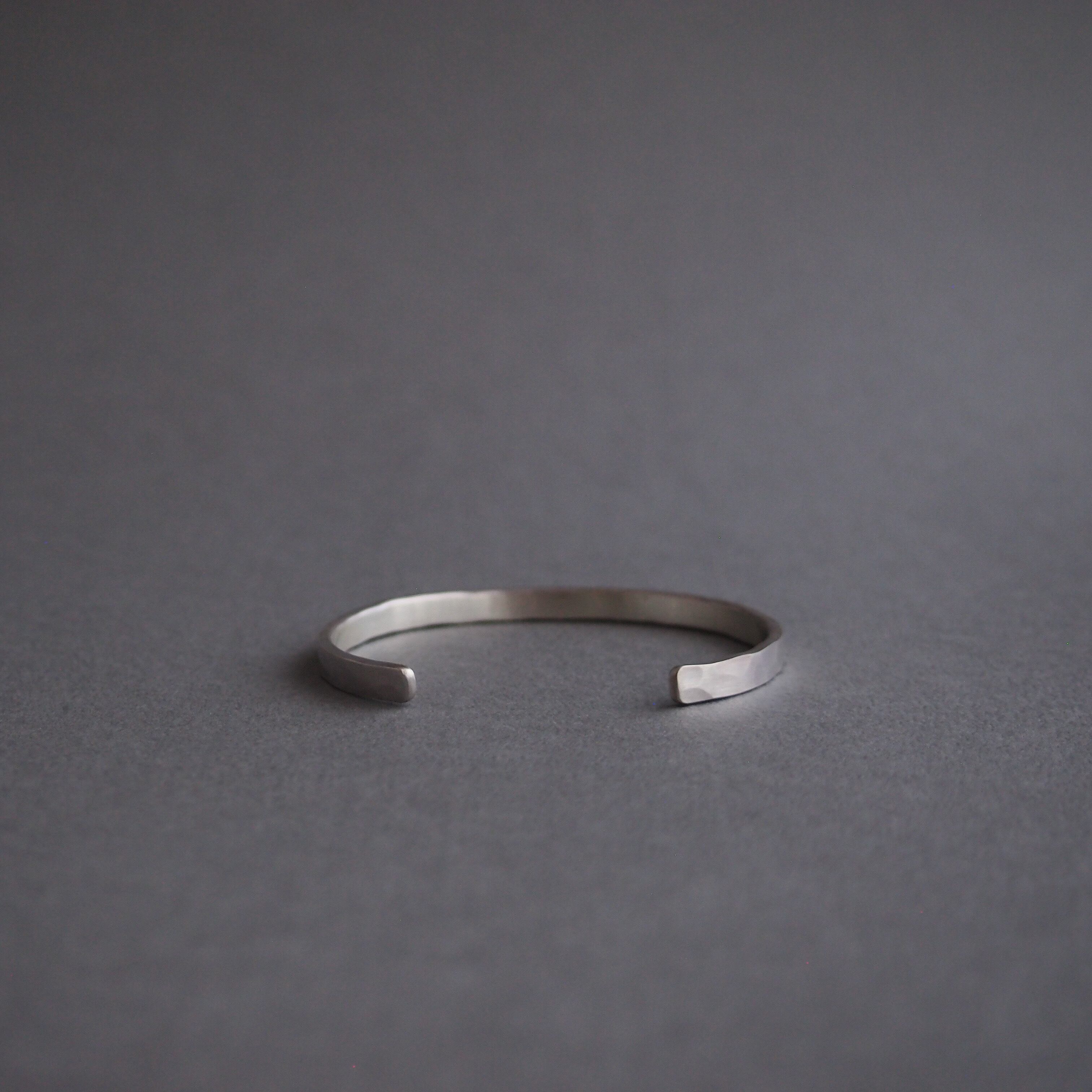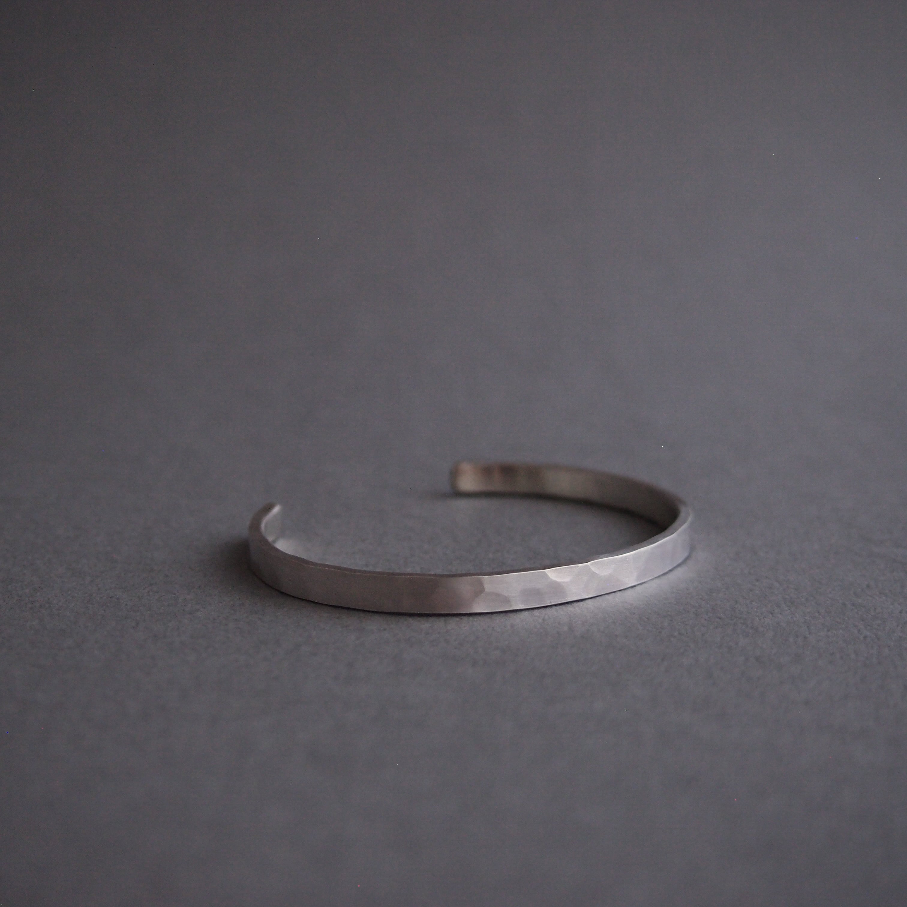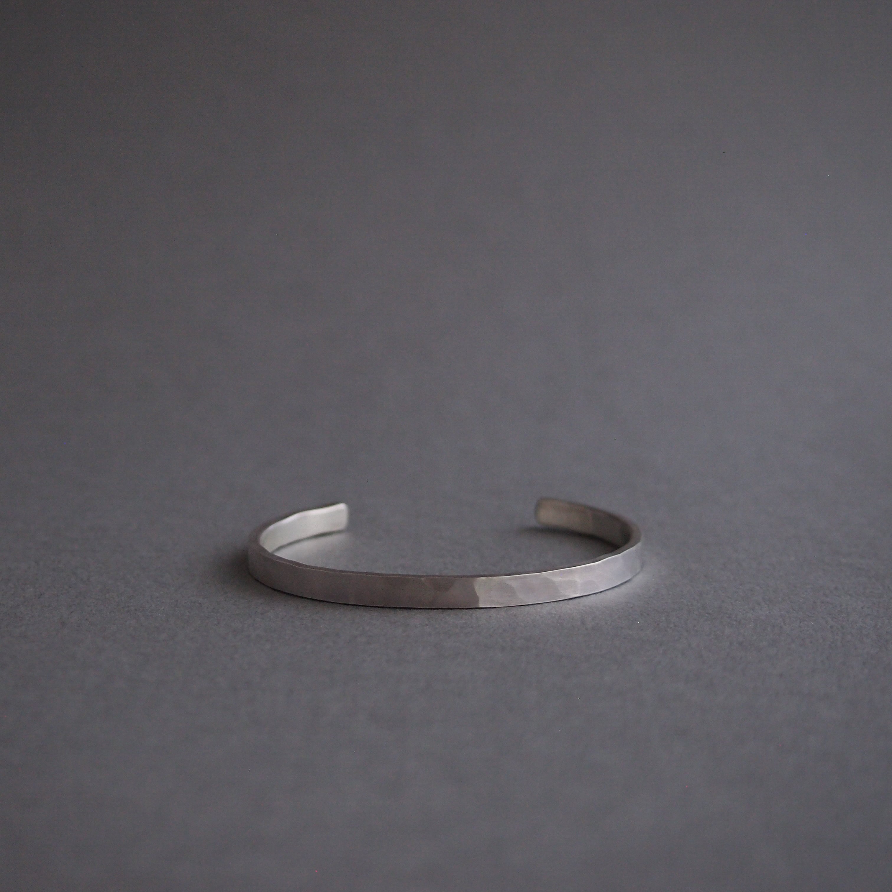 4mm幅のシルバーにランダムに槌目をつけたバングルです。