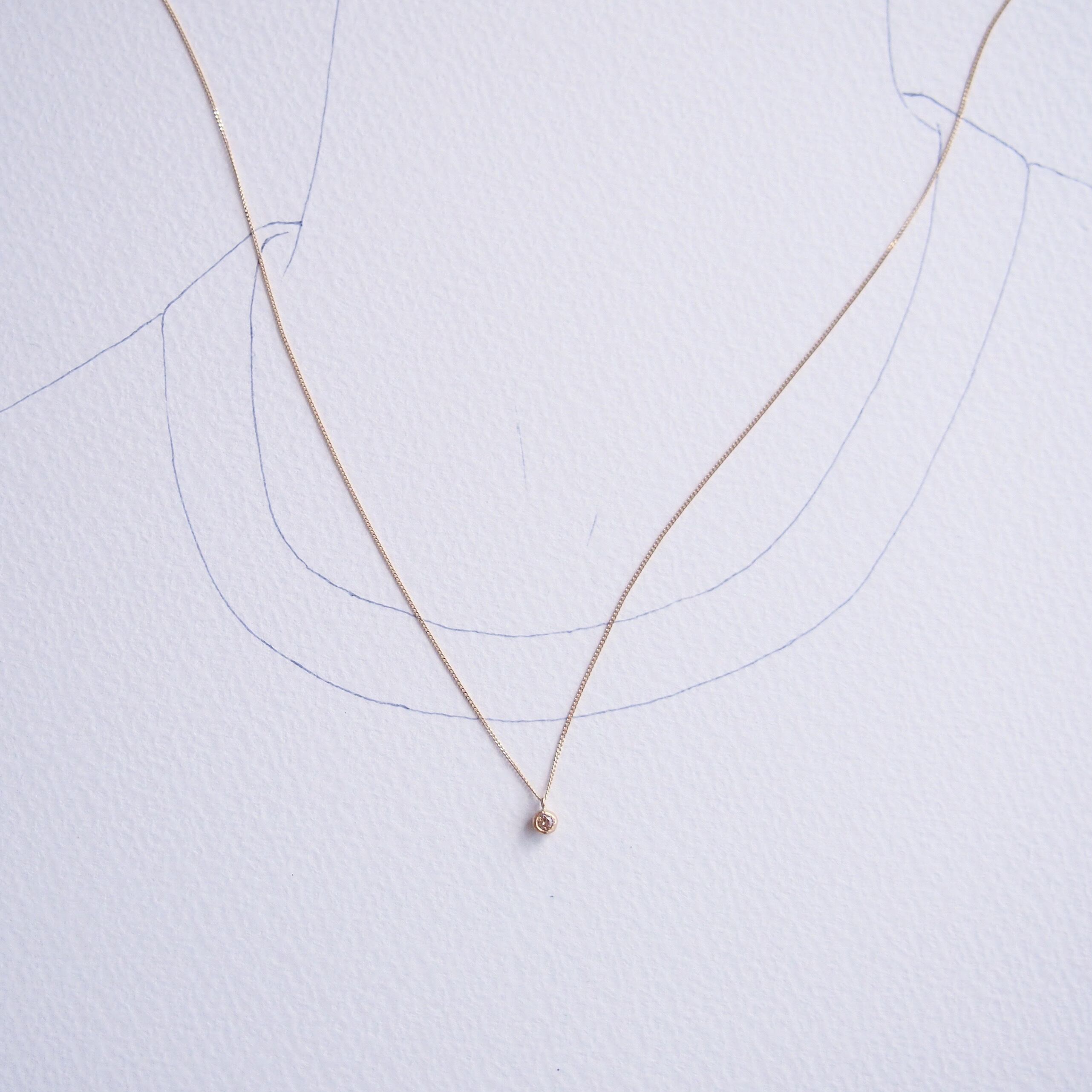 ブラウンの落ち着いた色とダイヤモンド特有の輝きが襟元に小さなきらめきを添えます。
