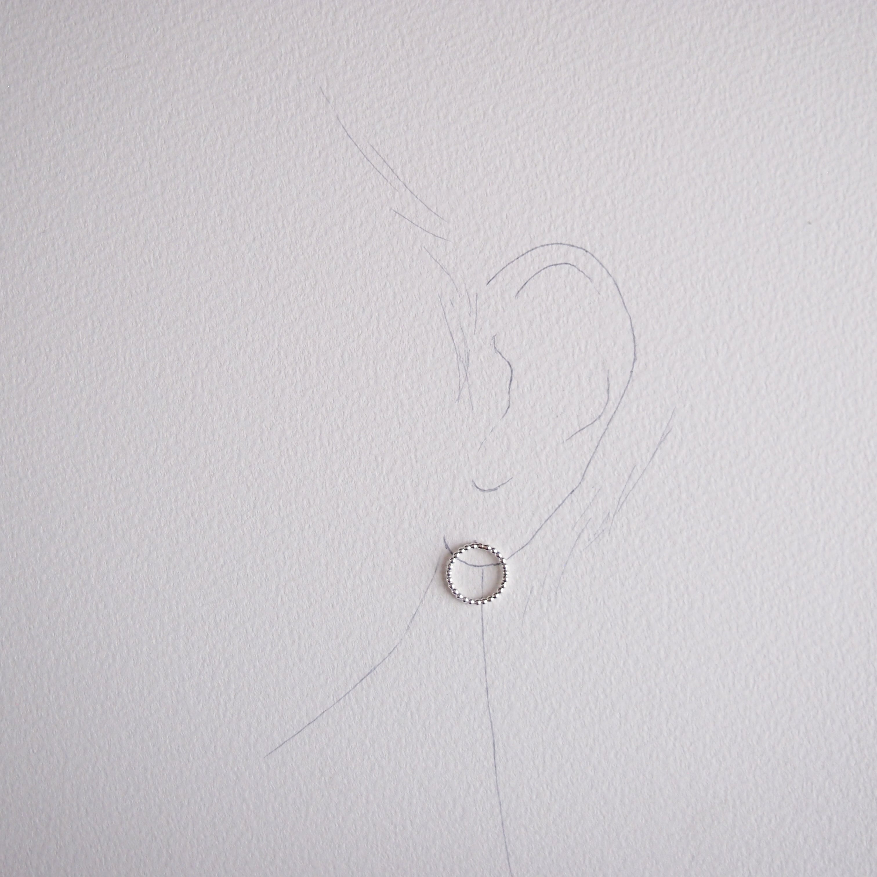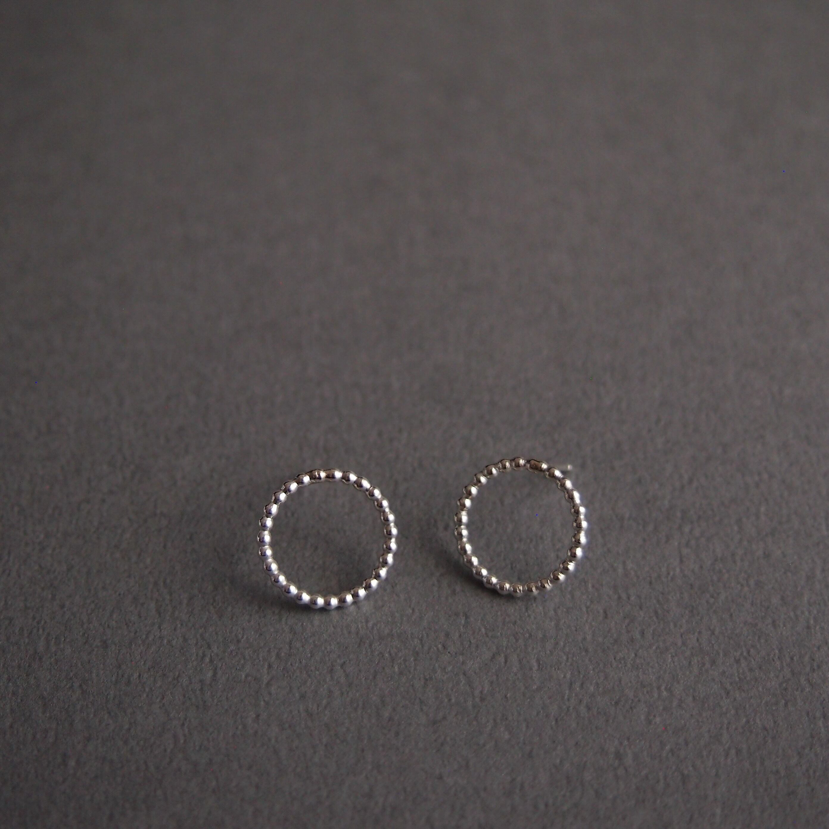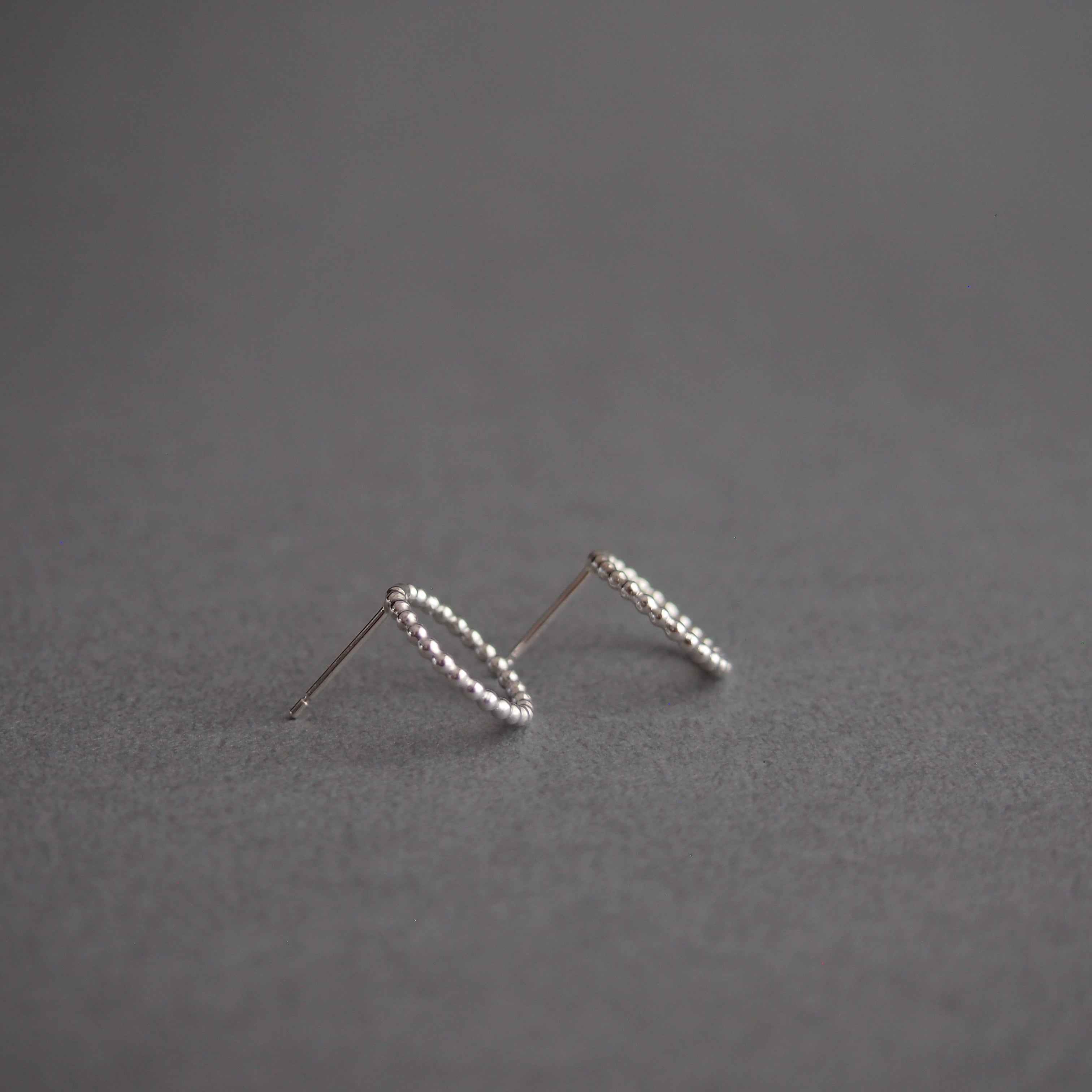 シルバーの小さな粒が連なり、落ち着いたかわいらしさのあるピアスです。